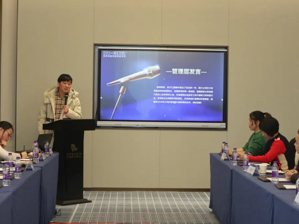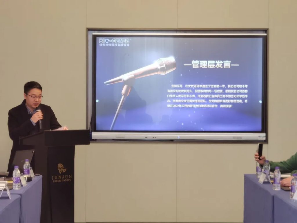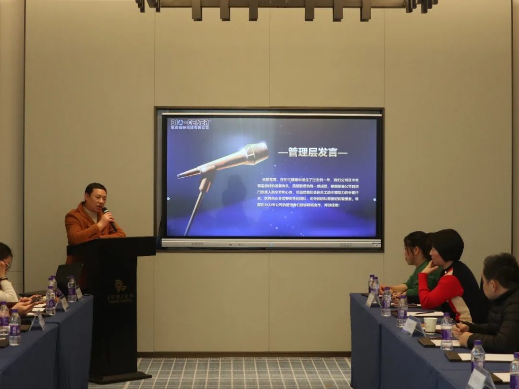 總經(jīng)理黃霖進(jìn)行年度總結(jié),會(huì)議中黃總介紹了公司2021年度業(yè)績完成情況,并對(duì)2022年及后三年的業(yè)績做了展望分析。