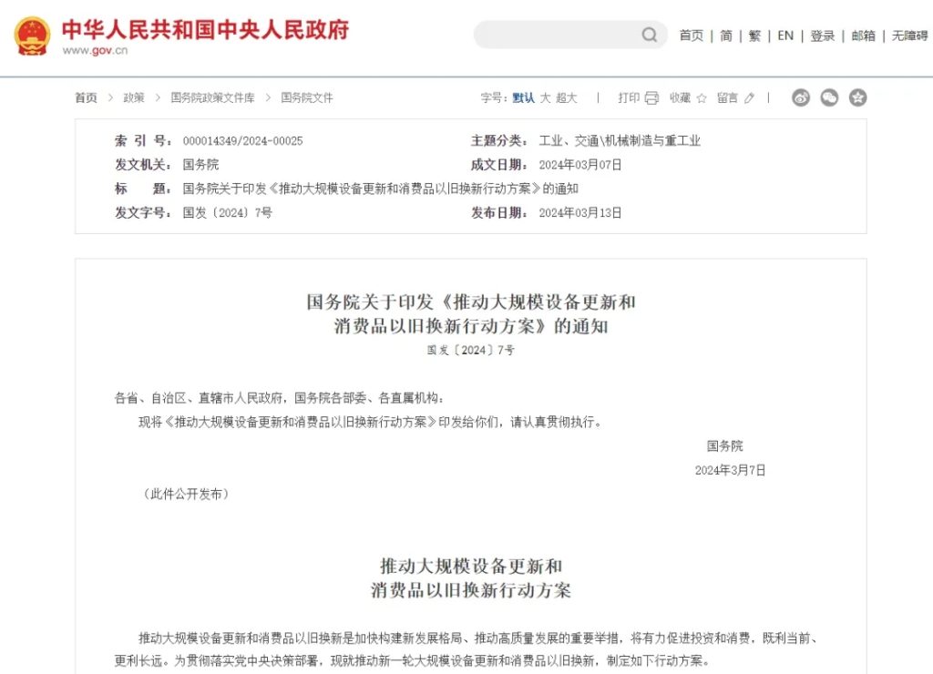 2024年2月23日,習(xí)近平總書記在中央財(cái)經(jīng)委員會(huì)會(huì)議強(qiáng)調(diào):加快產(chǎn)品更新?lián)Q代是推動(dòng)高質(zhì)量發(fā)展的重要舉措,要鼓勵(lì)引導(dǎo)新一輪大規(guī)模設(shè)備更新和消費(fèi)品以舊換新;2024年3月13日國務(wù)院印發(fā)《推動(dòng)大規(guī)模設(shè)備更新和消費(fèi)品以舊換新行動(dòng)方案》,設(shè)備更新將迎來超過5萬億的市場(chǎng)。