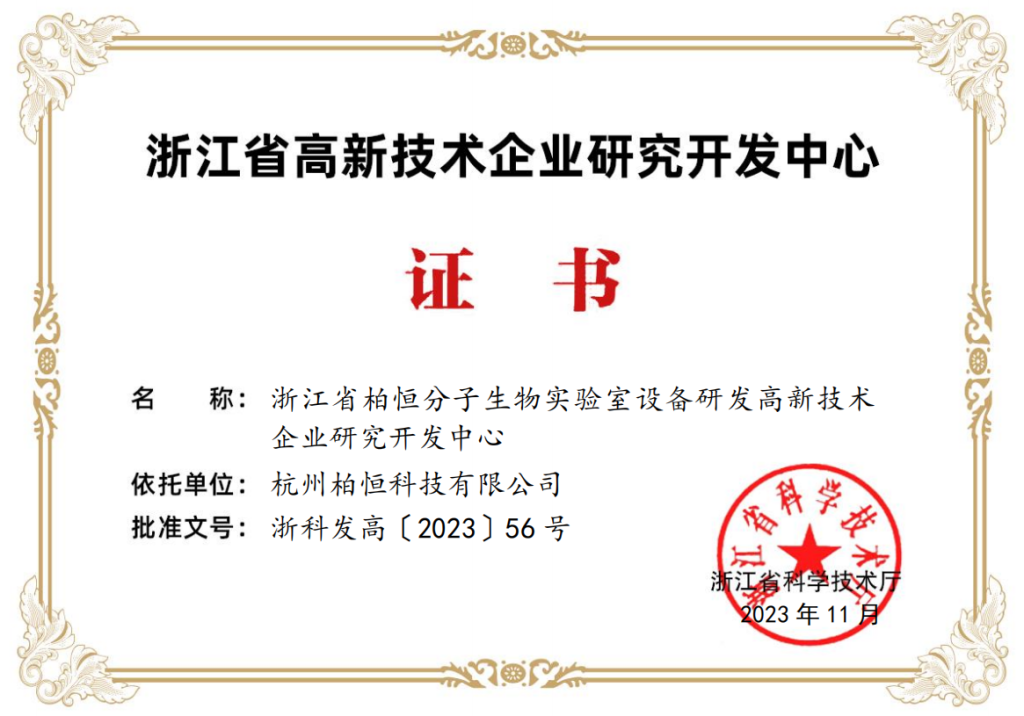 2023年杭州柏恒科技有限公司榮獲“浙江省專精特新中小企業(yè)”、“浙江省高新技術(shù)企業(yè)研究開發(fā)中心”認定,這是對柏恒科技創(chuàng)新和產(chǎn)品創(chuàng)新的充分認可,柏恒科技將繼續(xù)響應國家號召在“專精特新”方面持續(xù)深入。