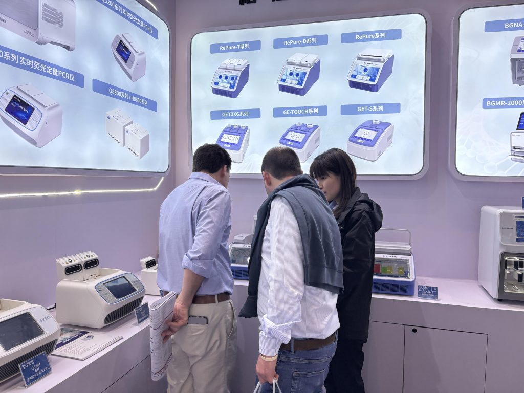 現場觀眾紛紛體驗設備操作,對96孔實時熒光定量PCR儀、三槽RePure-T、核酸提取儀、超微量、酶標儀等明星產品表現出濃厚興趣。?